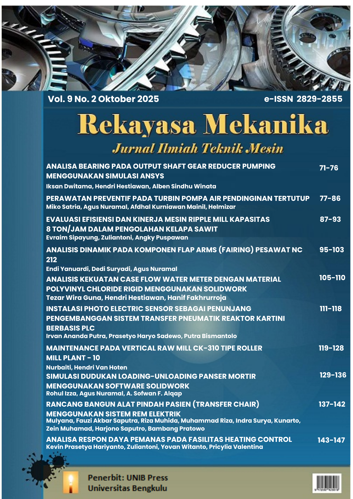 - Bakti, A. R. 2021. Analisa Preventive Maintenance, Domestic Booster Pump Di Pltu Keban Agung 2 X 135 MW. Jurnal Teknik Elektro Raflesia, 1(1), 1-7.